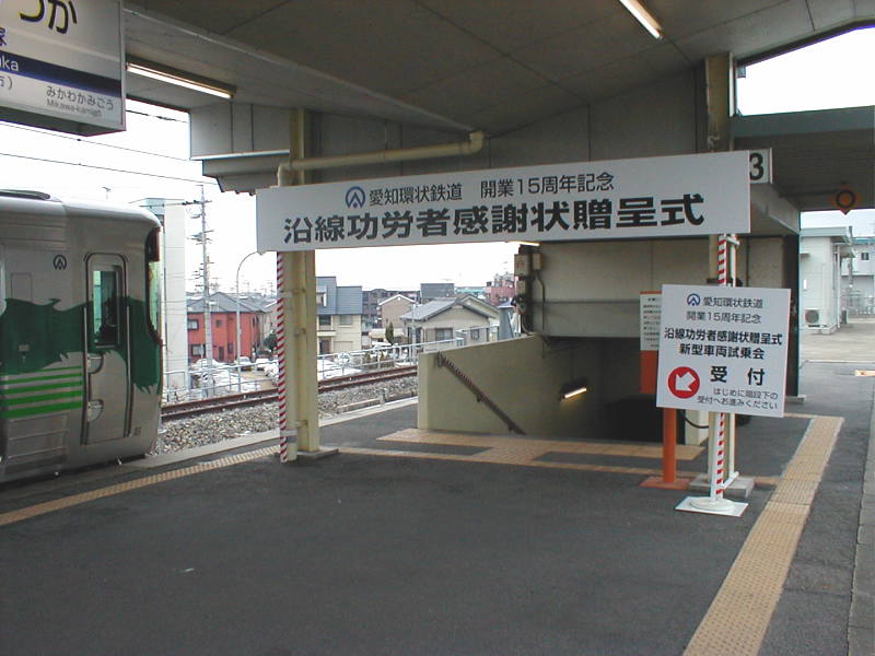 試乗会を前に2000系(2201)車内にて沿線功労者感謝状贈呈式が行われ、幼稚園児による一日駅長が試乗会列車の発車合図を行った。